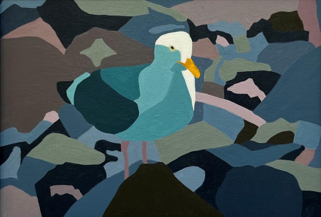 The Art Committee gratefully accepted the donation of “Seized” by Anne Sheer, acrylic on paper mounted on 1.5 wood panel. This is hanging above the Reference Desk.The Art Committee gratefully accepted the donation of “Mackworth Morning” by photographer Whitney S. Ball. This is hanging in the Study Room East.Falmouth artist Jan ter Weele generously donated two paintings to our permanent collection: “Five Boats,” (pictured above) hung in the Children’s Room near the large picture windows, and “Maine,” (pictured below ) which you will find in the middle study room.